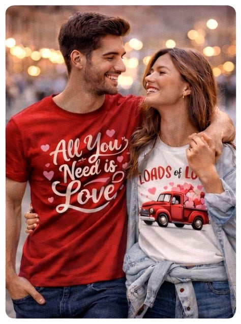 “Ordered two matching Valentine tees and they came out really nice. Soft fabric, good fit, and they look great in photos. Arrived in 4 days which was a bonus.”